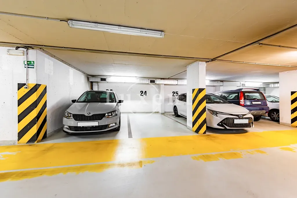 Součástí kupní ceny jsou dvě parkovací stání v podzemní garáži a sklep o velikosti 10 m².