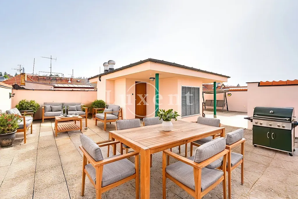 Představujeme Vám k prodeji exkluzivní dvoupodlažní byt o dispozici 5+kk v atraktivní lokalitě Praha 6 - Břevnov. Tento unikátní byt o celkové užitné ploše 294 m² se střešní terasou o rozloze 93 m² a dvěma balkony s celkovou plochou 7 m² nabízí komfort, styl a dostatek soukromí pro ty, kteří hledají výjimečné bydlení v blízkosti centra Prahy.