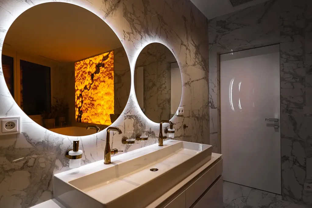 Zážitek vám přinese také každá chvíle strávená ve vašem domácím wellness, ve kterém najdete vířivku Jacuzzi a onyxový obklad s podsvětlením jako mistrovské dílo designu. Místnost je navíc situována na západ, což při západu slunce podtrhne celkovou atmosféru.
