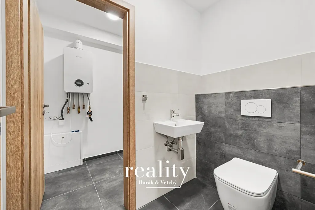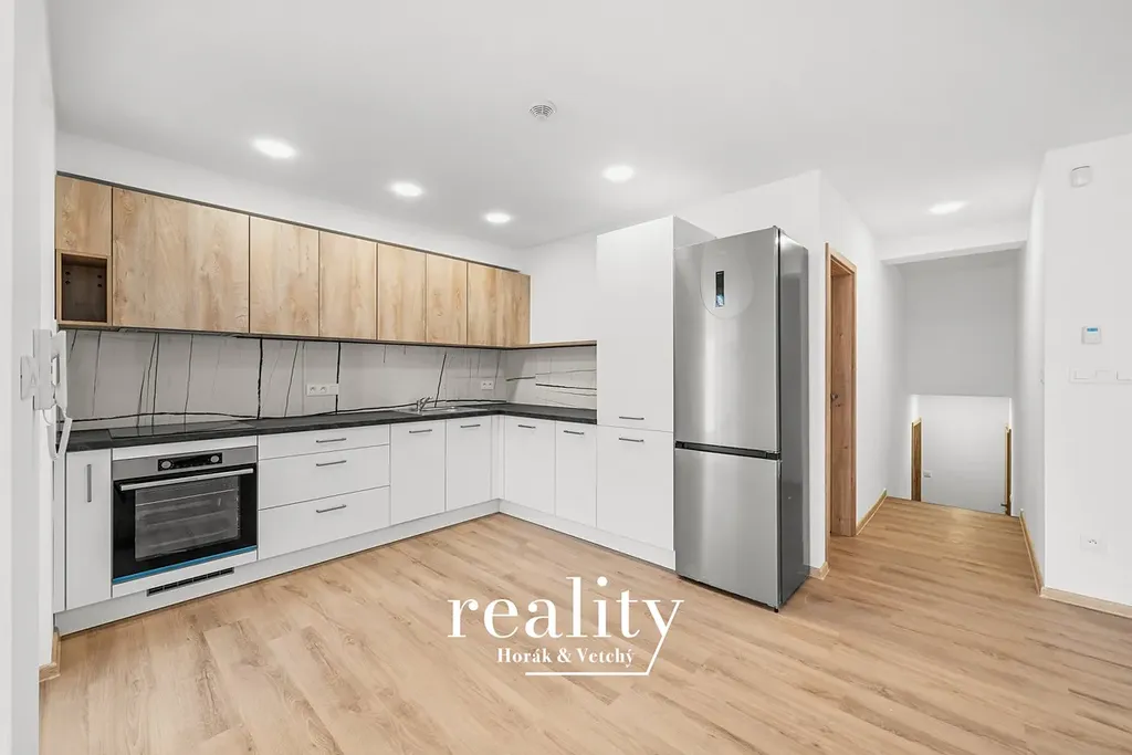 Byt o výměře 66 m² je situován ve spodním patře řadového rodinného domu a jedná se o zcela novou stavbu – v bytě dosud nikdo nebydlel. Dispozice zahrnuje obývací část s kuchyňským koutem, ložnici, koupelnu, komoru, technickou místnost a praktické úložné prostory.