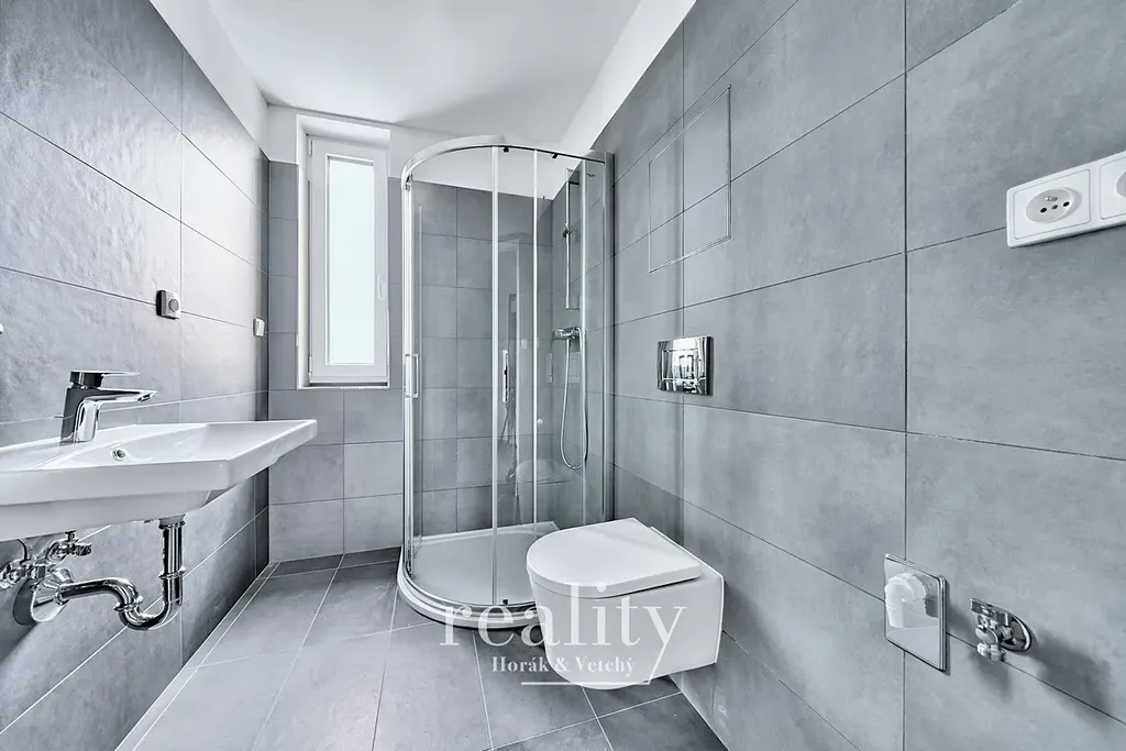 Součástí bytu je nová kuchyňská linka včetně spotřebičů (indukce, lednice, mrazák, myčka), zbytek není zařízen nábytkem.