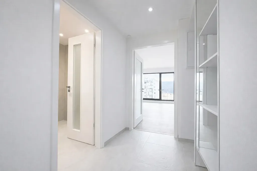 Nadčasová kombinace barev, materiálů a technického provedení vás bude těšit po celou dobu nájmu - namátkou uvedu nadstandardní obklady a sanita, na míru vytvořená, plně vybavená kuchyňská linka, nebo inteligentní osvětlení Philips HUE. Samozřejmostí jsou vestavné skříně v předsíni, dálkově ovládané předokenní žaluzie, solární fólie na oknech, nebo automatická rekuperace vzduchu.