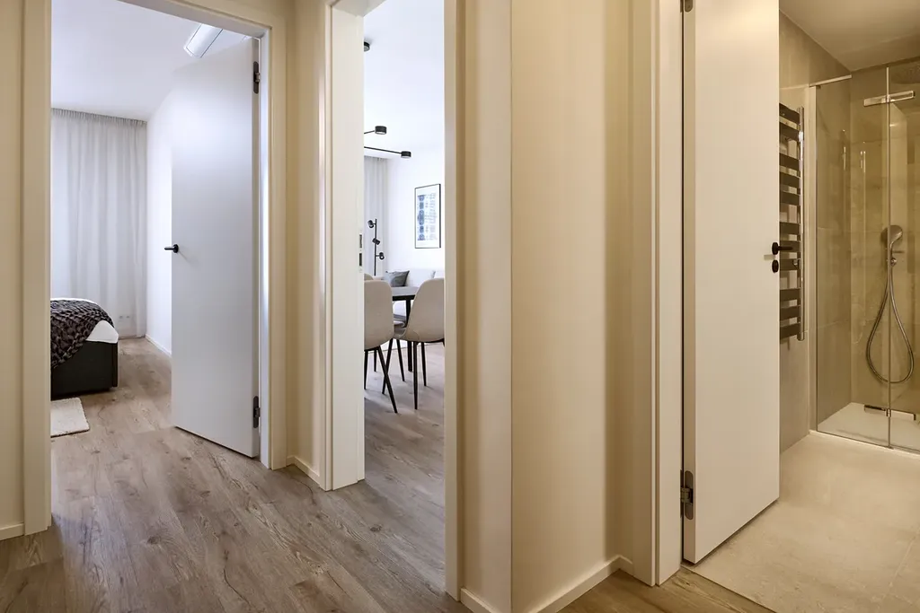 Byt je nadstandardně vybaven podlahovým vytápěním, centrální rekuperací a inteligentním systémem LOXONE, který umožňuje ovládání osvětlení, vytápění, žaluzií či ventilace pomocí tabletu v bytě nebo přes aplikaci v telefonu. Součástí vybavení jsou elektricky ovládané venkovní žaluzie, autentické fotografie.