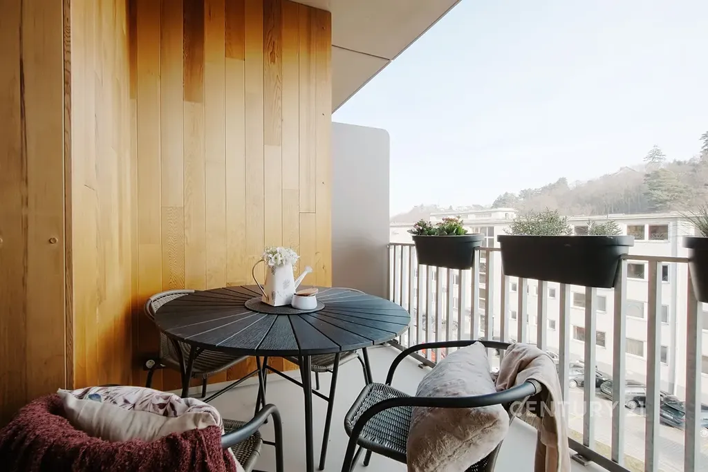 Jednotka disponuje prostornou předsíní, technickou místností a koupelnou s toaletou. Z předsíně lze vstoupit jak do obývacího pokoje, tak do ložnice. Tyto dvě místnosti jsou propojeny přes balkón o velikosti 6,6 m² s navazující lodžií 3,6 m², které poskytují úchvatný výhled na okolí a prostor pro odpočinek. Byt je dále vybaven sklepní kójí o velikosti 1,5 m², což přidává praktický úložný prostor. Nechybí ani parkovací místo v podzemní garáži. Další parkování je možné v ulici.