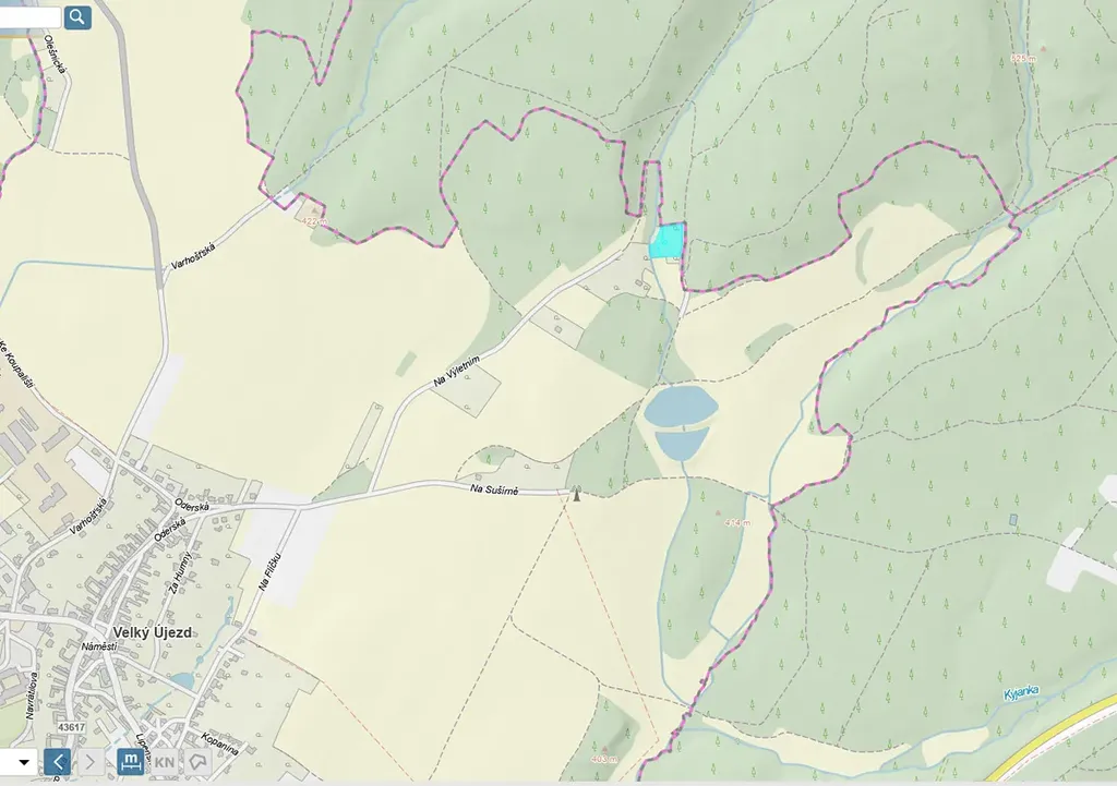 Nemovitost nabízí naprostý klid a soukromí, přesto s dobrou dostupností. Do městyse Velký Újezd, vzdáleného cca 1,5 km, se pohodlně dostanete po lesní cestě a najdete zde kompletní občanskou vybavenost. Ke koupání láká lom Výkleky (cca 4,5 km) a nájezd na dálnici je vzdálen pouhé 3 minuty jízdy autem.