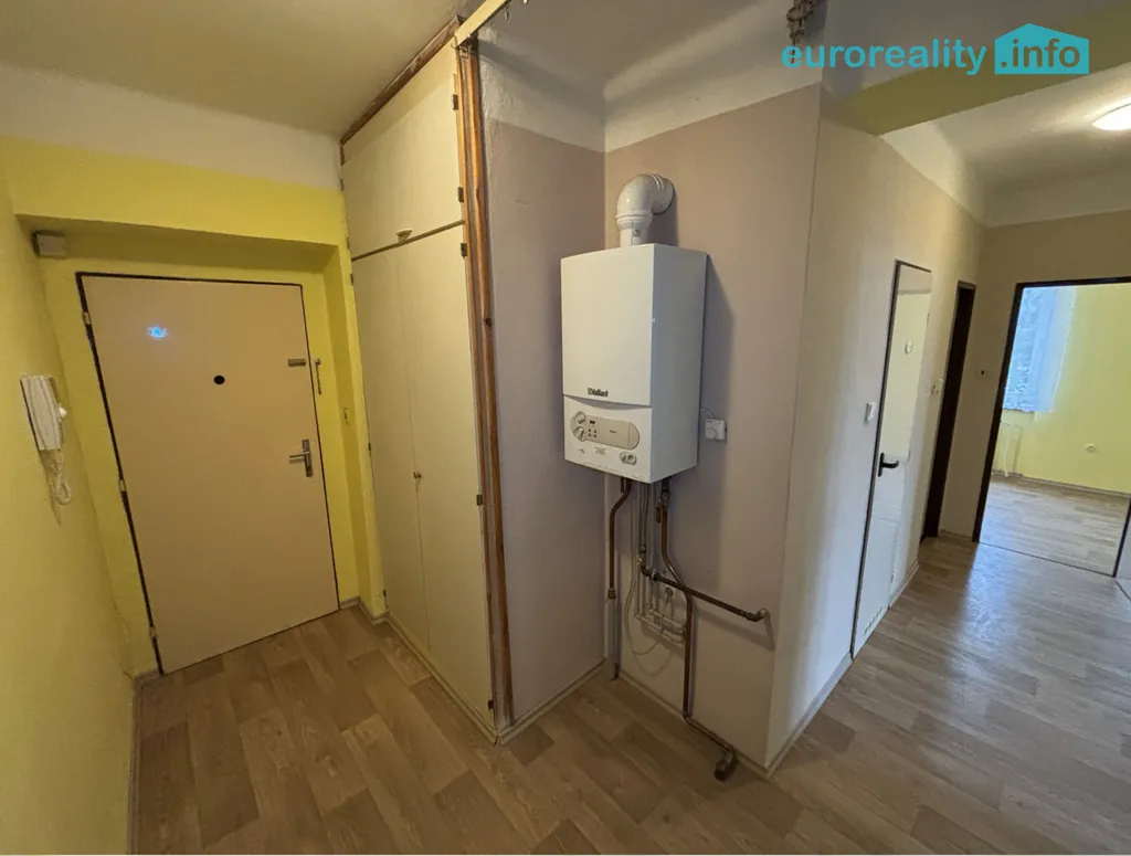 Dispozici tvoří dva velké pokoje, samostatná kuchyně, koupelna, toaleta a prostorná chodba s dostatkem místa pro úložné prostory. Byt je vybaven plynovým kotlem, který zajišťuje jak vytápění, tak ohřev teplé vody.