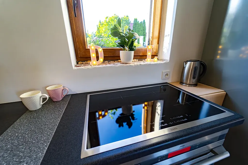 Vytápění v nemovitosti je řešeno podlahovým topením s tepelným čerpadlem umístěným za domem, aby nenarušovalo klidnou atmosféru na zahradě. Dům je připojen na obecní vodovod a kanalizaci, navíc využívá vlastní studny pro splachování a zalévání na zahradě (v domě jsou dva vodovodní okruhy). Elektřina je vedena v mědi a voda a odpady v plastu. Dům je zateplen polystyrenem o tloušťce 10 cm, průkaz náročnosti budovy PENB: skupina C. Náklady na provoz jsou přibližně 7.300,- Kč (elektřina 6.280 Kč, voda 420 Kč, internet 589 Kč).