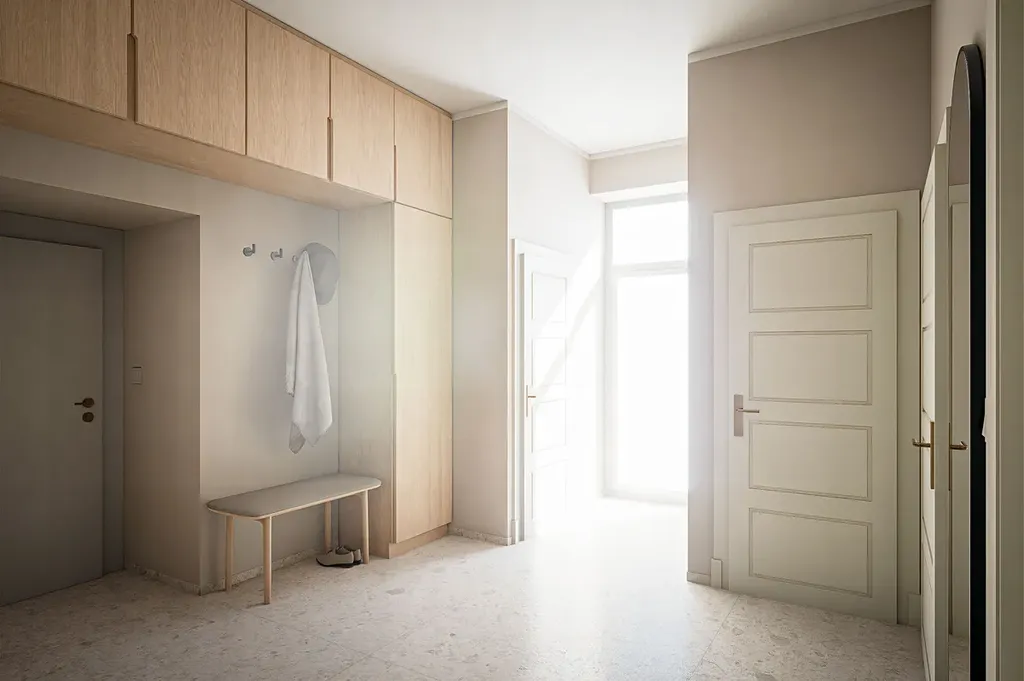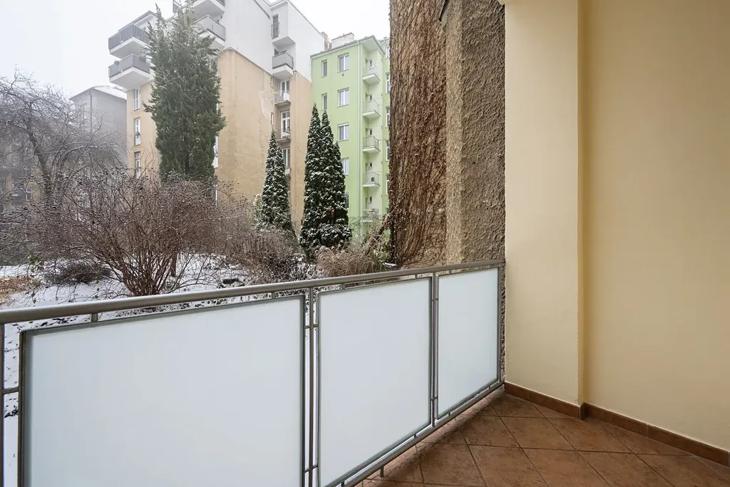 Výška stropů cca 3 metry dodává bytu mimořádnou vzdušnost a dostatek denního světla. Byt má nepopsatelnou atmosféru a klid, který je cítit ihned po vstupu a je dále umocněn orientací do tichého vnitrobloku byt je téměř součástí zahrady.