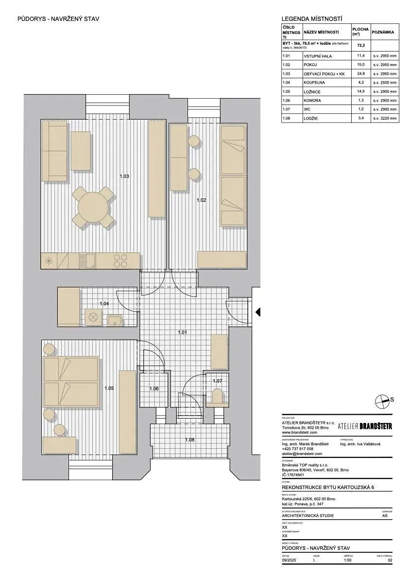Prodej bytu 2+1, Brno, Kartouzská, 79 m2