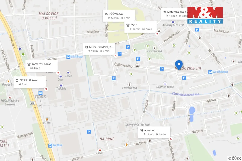 Byt se nachází ve 3. patře budovy a je připraven k okamžitému nastěhování. Zároveň součástí pronájmu jsou společné prostory a sklepní kóje. Vše se nachází v atraktivní lokalitě s velmi bohatou občanskou vybaveností. Pokud hledáte pohodlné bydlení blízko centra města, neváhejte nás kontaktovat pro více informací nebo domluvení osobní prohlídky. Rezervujte čas prohlídek po telefonu s makléřem.