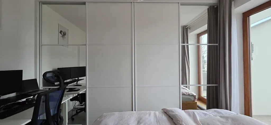 Ložnice je prakticky řešena, nabízí vestavěnou skříň i místo pro pracovní stůl vhodné pro home office a má přímý vstup na balkon. Koupelna s vanou a toaletou je řešena v jednom prostoru. Obývací pokoj s kuchyňským koutem tvoří hlavní obytnou část bytu a velká francouzská okna zajišťují dostatek denního světla.