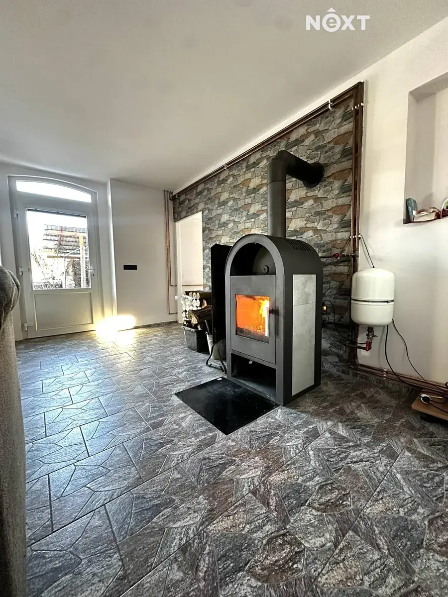 Částečně zařízený byt nabízí prostornou halu, obývací pokoj s krbem a kuchyní s vestavěnou linkou (součástí el. sporák, trouba, myčka a lednice) a koupelnu s rohovou vanou. Dále se v bytové jednotce nachází 3 prostorné pokoje. V bytě jsou položeny plovoucí podlahy a dlažba. K dispozici satelit a internet. Parkování ve dvoře až na dvě auta. Jedná se o velmi klidnou lokalitu s dobrou dostupností do Slaného (15 min) i do Prahy (40 min).