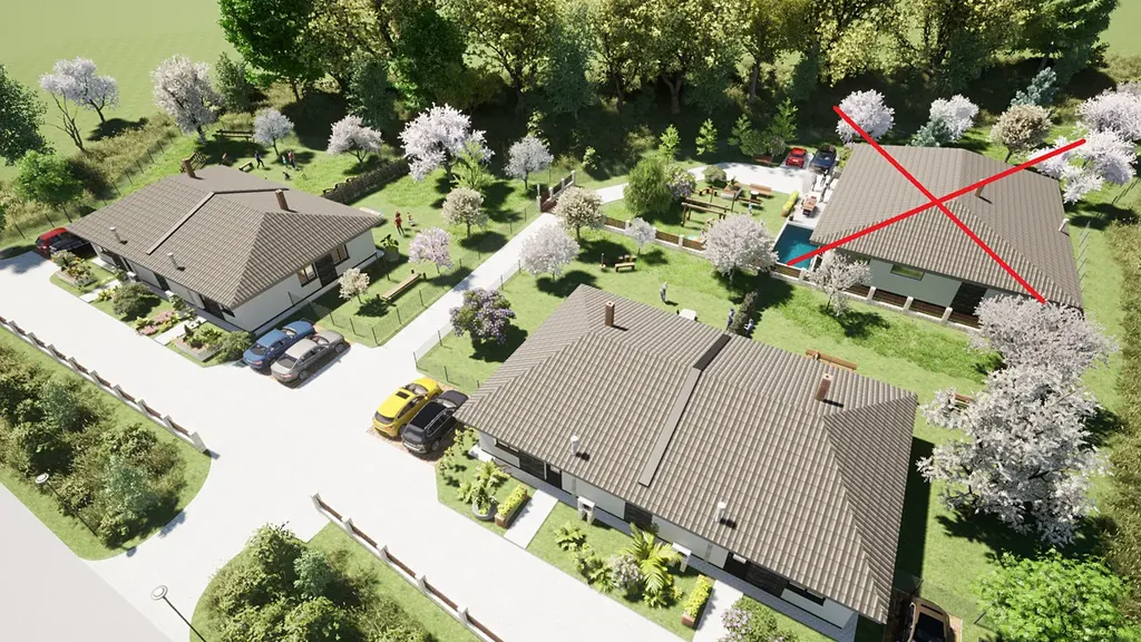 V současné době již probíhá výstavba samostatného RD na jedné z parcel a k prodeji zbývají 2 parcely. Na obou parcelách jsou vyprojektovány dva identické dvojdomky, na které je vydané stavební povolení. Druhá parcela má výměru 1233 m2 a je rovněž k prodeji. Možnost prodeje obou parcel najednou.