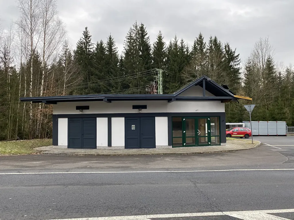 Jedná se o zděný přízemní objekt se zastavěnou plochou 70 m2. Uvnitř najdeme příjemné prostory vhodné na provozování prodejny, směnárny, kanceláře, skladu atd. Jedinečná strategická poloha v zóně bez další možnosti výstavby u velmi frekventovaného hraničního přechodu. Objekt má vlastní sociální zázemí a je napojen na kompletní inženýrské sítě (elektro, voda, kanalizace). Budova je ve výborném technickém stavu s nízkými provozními náklady. Nabízená nemovitost má maximální komerční využitelnost a také bezbariérový přístup. Před domem je k dispozici zpevněná parkovací plocha na vlastním pozemku o výměře 145 m2.