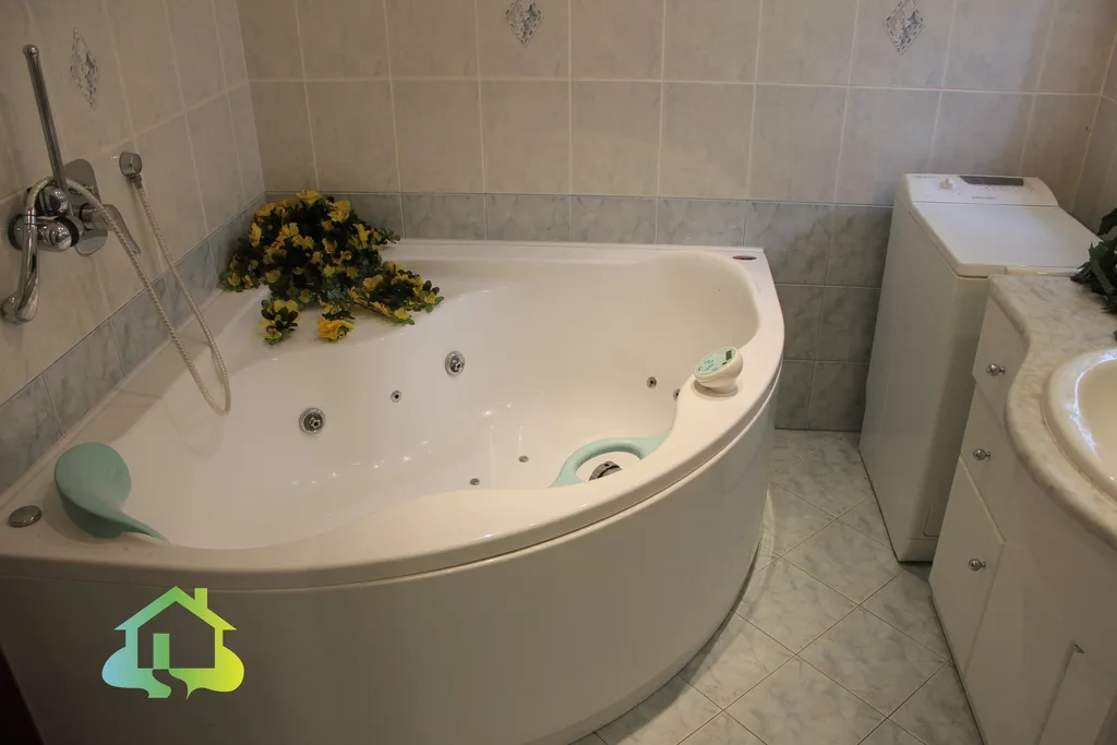 Přízemí nabízí kuchyni s jídelnou (20 m²), samostatný pokoj (19 m²) a koupelnu s masážní vanou, sprchovým koutem a WC. Kuchyně je vybavena sporákem, jídelním stolem. V prvním patře na Vás čeká velkorysý pokoj (41 m²), prostorná šatna (17 m²) a další koupelna se sprchovým koutem a WC.