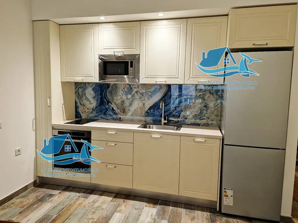 Nabízíme Vaší pozornosti 3+kk, nacházející se v první linii v luxusním rezidenčním komplexu Silver Beach, v klidném a malebném přímořském městečku Byala. Užitná plocha bytu je 107 m2 a celková plocha je 140 m2. Byt se nachází ve druhém patře a sestává z prostorného obývacího pokoje, prostorný obývací pokoj s kuchyňským s jídelním koutem, dvou ložnic, dvou koupelen s toaletou a parádní terasy s výhledem na moře. Okna a terasa mají výhled na klidnou část komplexu, což poskytuje vynikající příležitost vychutnat si v tichosti výhled na moře. Byt je plně zařízený a vybavený vším, co potřebujete, ihned k nastěhování. V kuchyni jsou stylové a zcela nové kuchyňské skříňky na míru z kvalitní MDF, zadní kuchyňská stěna je ze stylovým krásných velkoformátových žulových obkladů s vyobrazením motivu mořského živlu, nové (s 5tiletou zárukou) domácí spotřebiče (velká lednice s funkcí "No frost", myčka, pyrolytická samočisticí trouba, sklokeramická varná deska, plně vestavná digestoř, vestavná mikrovlnná trouba) a výsuvné zásuvky zabudované v kuchyňské ploše, které ano při vaření v kuchyni se nehromadí prach a mastnota. V jídelně je rozkládací dřevěný jídelní stůl, který pohodlně usadí až 8 osob. V ložnicích jsou 4 místa na spaní (1 manželská a 2 samostatné postele), v obývacím pokoji další místa na spaní na velké rozkládací pohovce (pohovka má úložný prostor na ložní prádlo, polštáře a přikrývky). Apartmán je vhodný jak pro velkou rodinu s dětmi, tak pro společnou dovolenou dvou rodin.