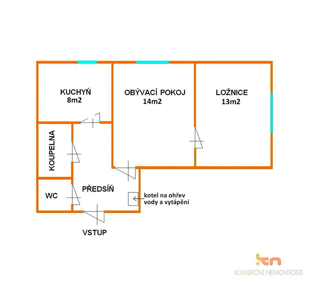 Topení a ohřev vody je plynovým kotlem, umístěným v předsíni.