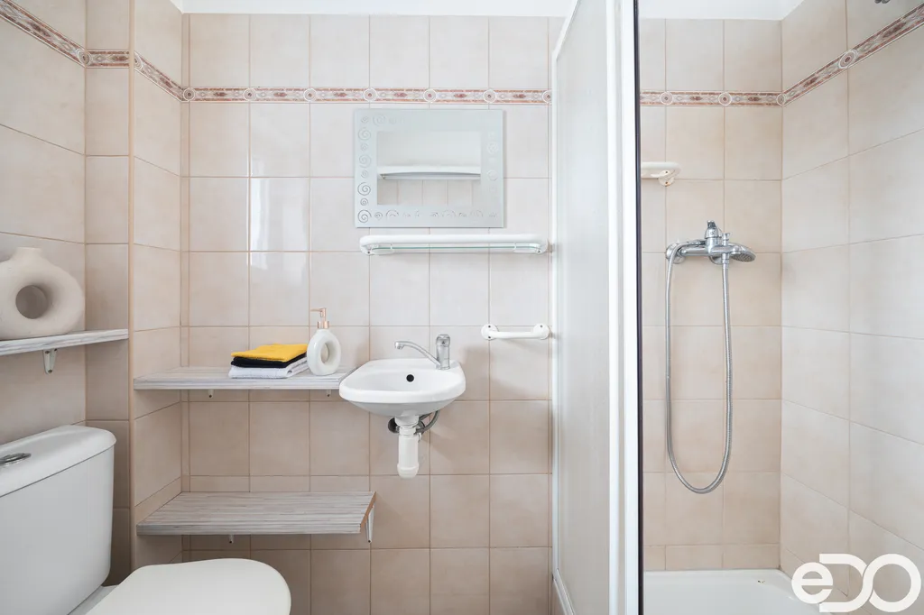 Byt o ploše 17,2 m² se nachází ve 2. patře domu z roku 2008 a nabídne příjemný výhled do zeleně. Dispozice je prakticky řešená – menší vstupní chodba, světlý obytný prostor s kuchyňským koutem a koupelna se sprchovým koutem, WC a pračkou.
