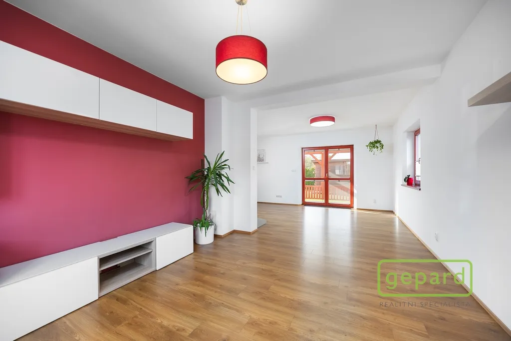 Zahrada je ideální „tak akorát“ – místo pro relax, dětské hry či grilování, ale zároveň není tak rozlehlá, abyste museli trávit každý víkend prací na záhonech. Na terase můžete posedět s rodinou, užívat si společné chvíle s přáteli a pozorovat západ slunce. Na pozemku nechybí pohodlné parkování pro dva osobní automobily.