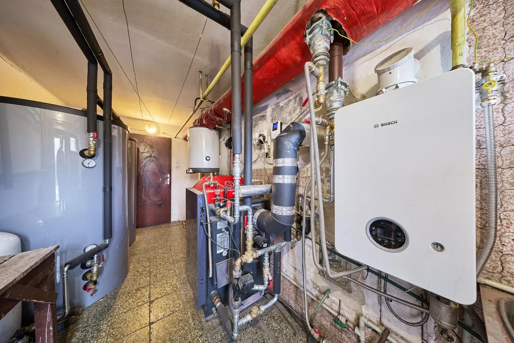 Nemovitost je v dobrém technickém stavu. Vytápění domu zajišťuje nový ekologický zplyňovací kotel na dřevo zn. Atmos v kombinaci se 2 akumulačními nádržemi o celkovém objemu 1500 litrů. Záložním zdrojem je nový plynový kondenzační kotel zn. Bosch. Ohřev teplé vody pomocí el. bojlerů. Dům je napojen na rozvod elektřiny, zemního plynu, obecní vodovod a kanalizaci.