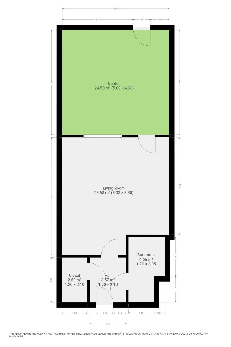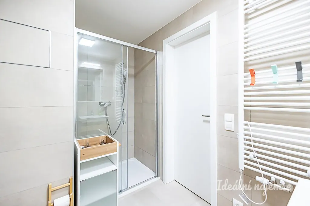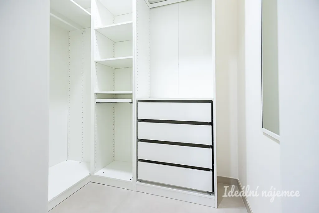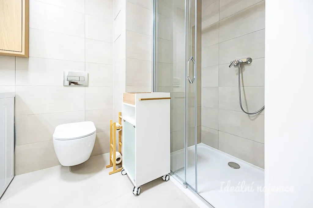 Interiér je nabízen jako nezařízený, což budoucímu nájemci umožňuje uzpůsobit si prostor přesně podle vlastního vkusu a potřeb. Srdcem bytu je velkorysý obývací prostor, který lze snadno rozdělit na odpočinkovou a spací zónu. Součástí je moderní kuchyňský kout vybavený lednicí s mrazákem, elektrickou troubou, varnou deskou i digestoří, přičemž nechybí ani praktické barové posezení. Komfort doplňuje koupelna se sprchovým koutem, toaletou, úložnou skříňkou a pračkou.