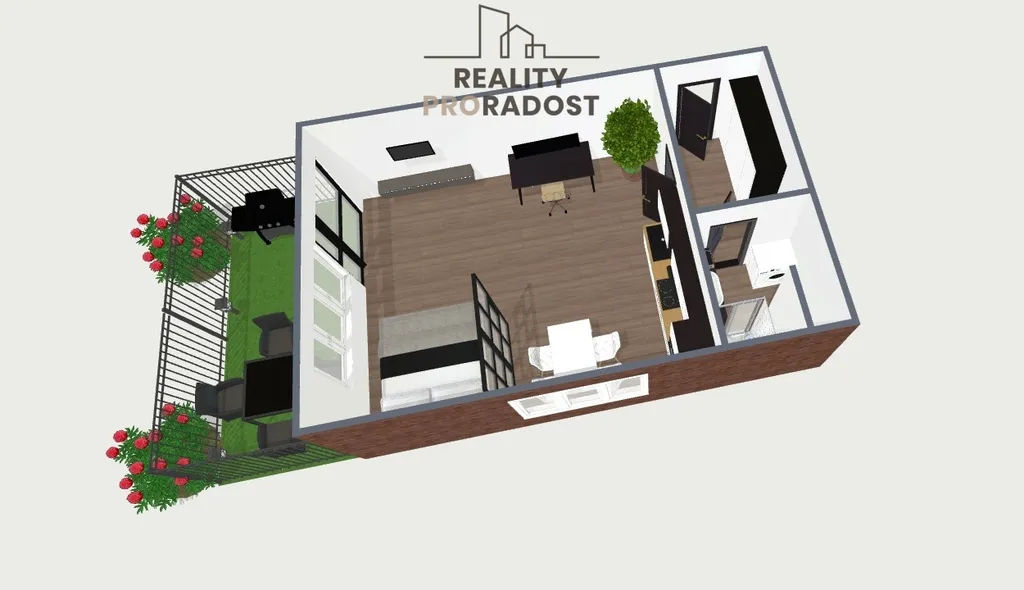 Byt je o velikosti 1KK s podlahovou plochou 49,14m2 Vám však nabídne další výhodu a to je předzahrádka o velikosti 33m2 a sklep o velikosti 2,05m2. Jenž jsou jeho součástí.