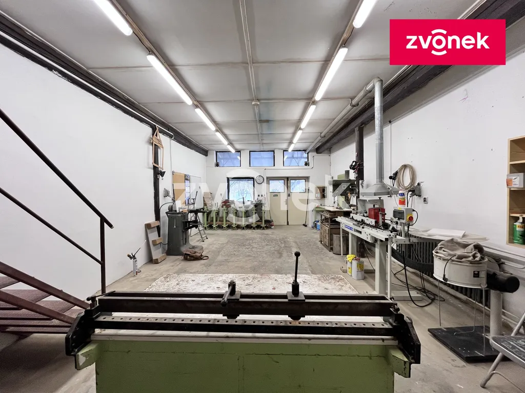 Nabízíme k dlouhodobému pronájmu dílnu v obci Sazovice, vhodnou pro lehkou výrobu, skladování, provoz e-shopu či řemeslnou činnost, jako je truhlářství, klempířství nebo vodo-topo služby. Prostor je kolaudován jako dílna, je možné využití soustruhu, jiná těžká výroba však není povolena. Vysokozdvižný vozík není povolen, paletový vozík ano. Součástí pronájmu jsou celkem tři dílny, dále dva menší sklady vybavené regály, technická místnost, WC se sprchou a dvě místnosti sloužící jako samostatná kancelář a denní místnost v 2. podlaží.