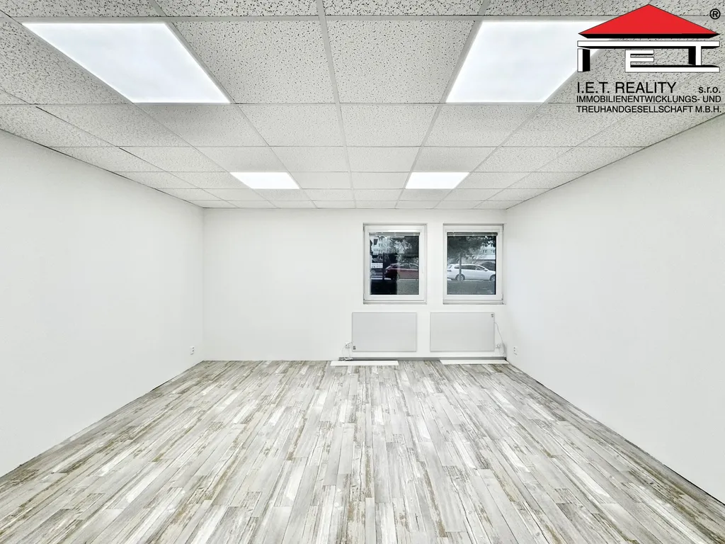 Jedná se o kancelář čtvercového tvaru o výměře cca 25 m². Nájemci jsou k dispozici společné dámské i pánské toalety a kuchyňka. Přístup do areálu je možný nonstop. Součástí uvedeného nájmu je i jedno parkovací stání přímo u budovy.