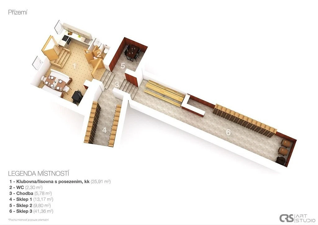 Stavba nad historickým sklepem prošla v roce 2022 zásadní rekonstrukcí. Prostor bývalé lisovny je vkusně rekonstruován na degustační místnost (s posezením pro cca 10 osob) s krbovými kamny a její součástí je i kuchyňský kout a dále samostatné WC.