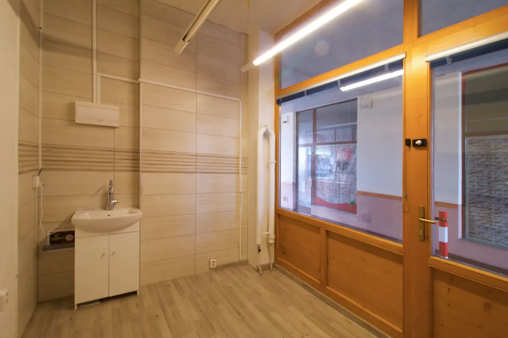 Prostor tvoří jedna místnost vhodná pro maloobchodní činnost či drobné služby. K dispozici je společné zázemí domu, kde je možné využívat WC a umyvadlo. Majitel preferuje provozy zaměřené na drobné zboží, jako jsou mobilní telefony, drobná elektronika, textil, galanterie, konfekce, bižuterie, dárkové předměty, čaje, káva, případně služby typu servis PC, opravy telefonů či obuvi.