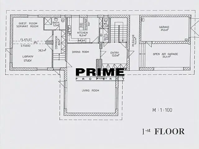 Dům je třípodlažní (suterén, přízemí a podkroví). Dispozice přízemí domu: vstupní hala, velká místnost s krbem a vstupem na zahradu, plně vybavená kuchyň s kuchyňskou linkou a novými spotřebiči Bosch (sklokeramická varná deska, trouba, myčka, lednice s mrazákem, mikrovlnná trouba a pračka), další 2 místnosti, koupelna a samostatné WC. 1. patro: místnost s vlastní koupelnou, další dvě místnosti, další koupelna, šatna a komora. Suterén: velká místnost (39m2), vinný sklípek a prádelna.