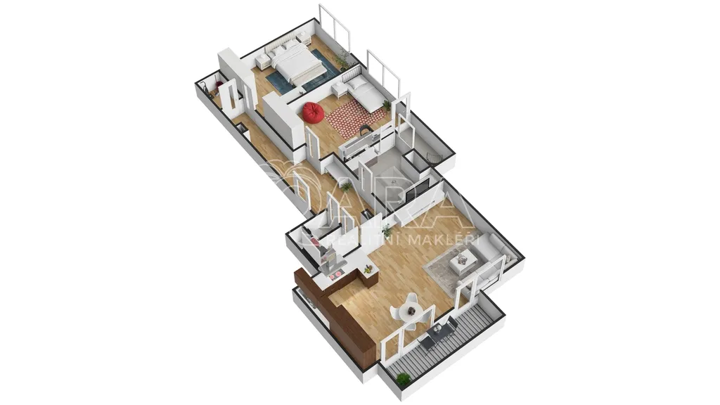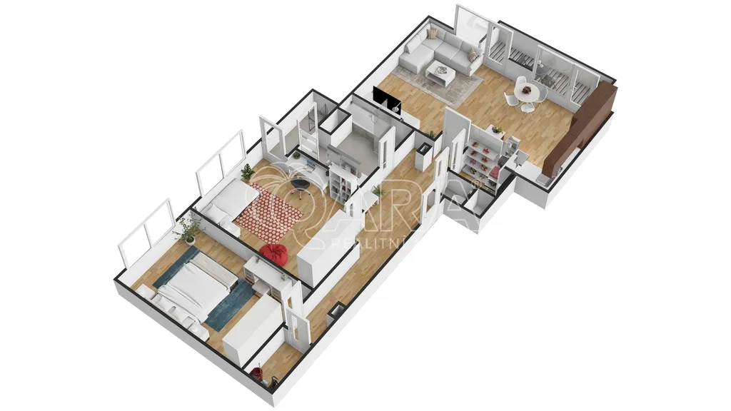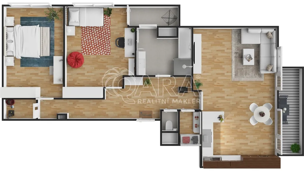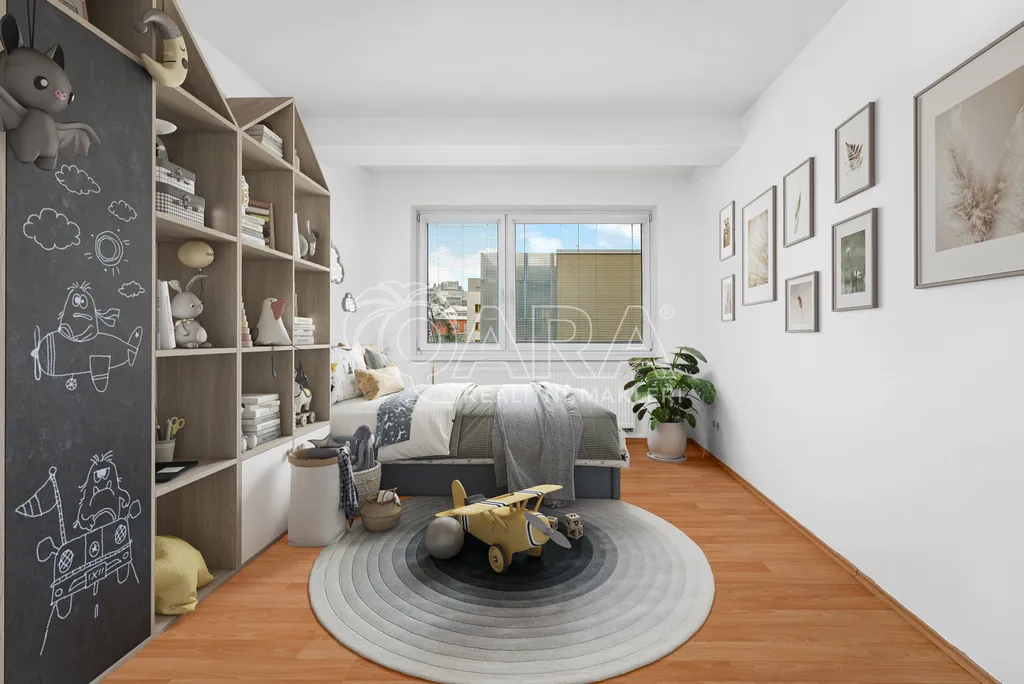 Byt disponuje skvělou dispozicí, díky které je zajištěn dostatek úložných prostor. Pro svá velká okna se do bytu dostává přirozené světlo, což umocňuje příjemnou atmosféru.