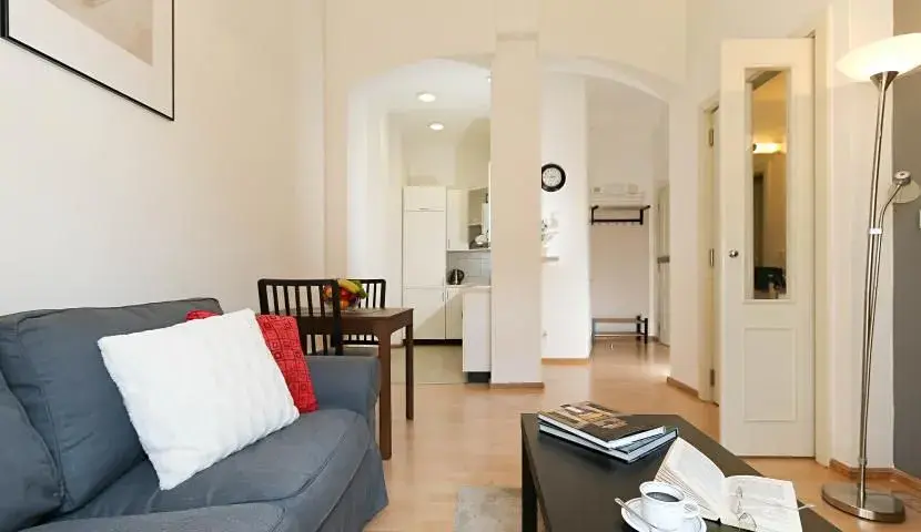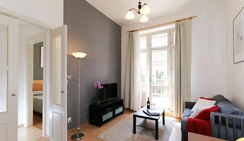 Fully furnished one bedroom apartment with balcony, 2+kk, 42 sqm, is situated on the 1st floor in a well maintained building on Belgická street in Prague 2 Vinohrady. The flat has entrance hall, living room with dining area and balcony, fully equipped kitchen (electric hob, oven, dishwasher, fridge, freezer, set of dishes), separated bedroom, bathroom with bathtub and toilet, washing machine and dryer. The rent 26.000,-/month + services and energies approx. 5.400,-/month. Possibility to rent parking space in the courtyard or a garage close by. Available from 2/2026.