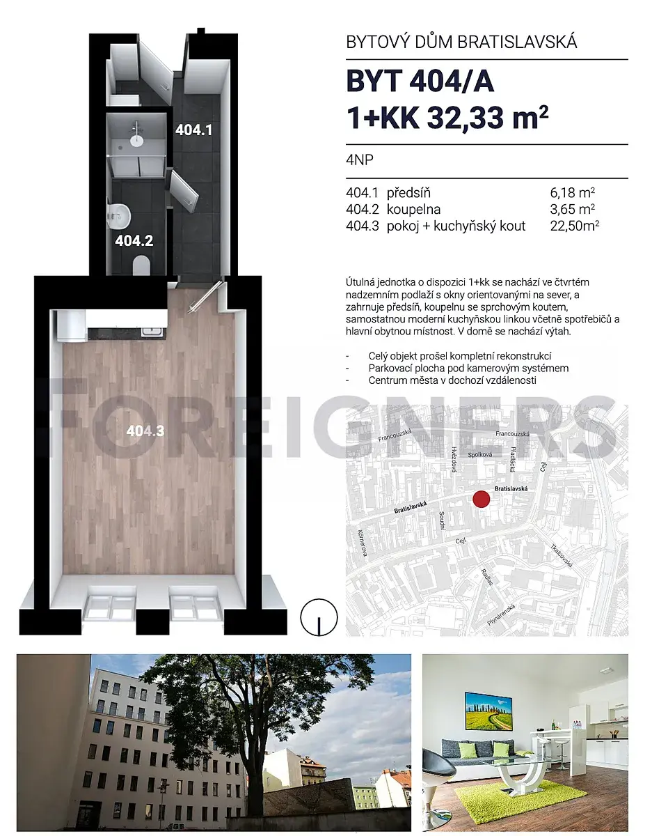 Nabízíme k pronájmu útulný byt 1+kk č. 404A, který je ideální pro jednotlivce nebo pár, hledající pohodlné a klidné bydlení s výbornou dostupností do centra města.