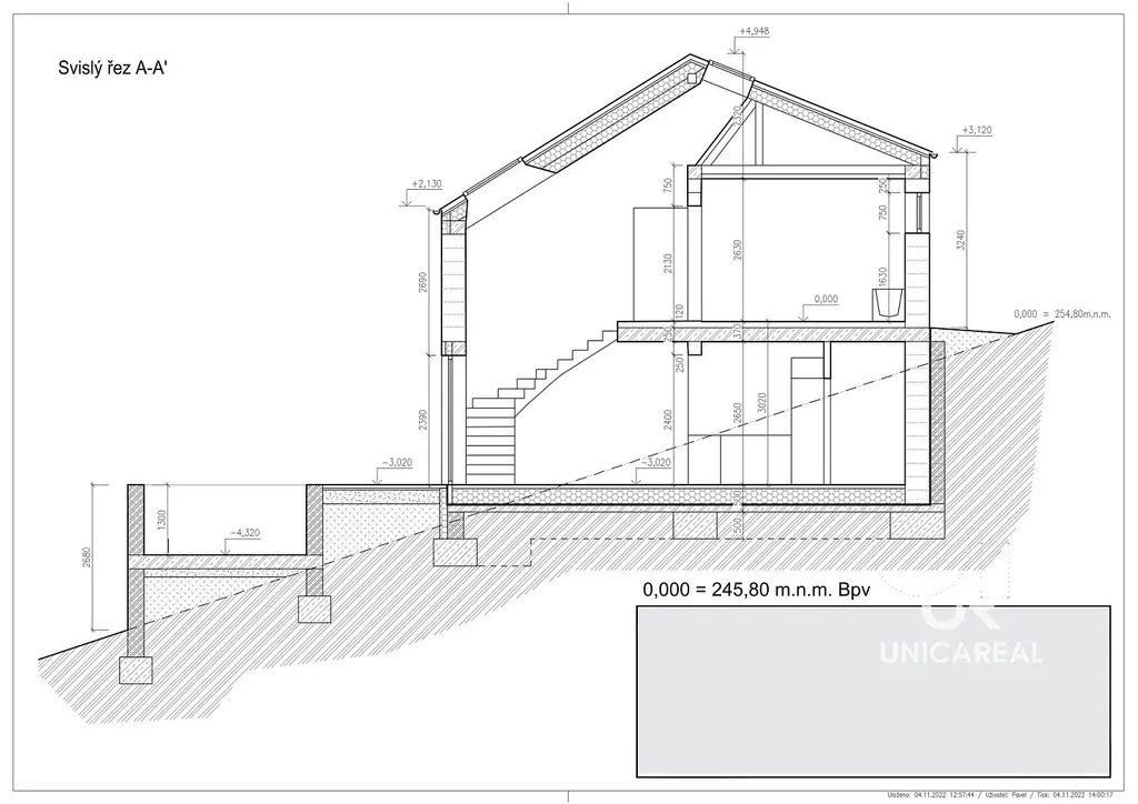 Tato nabídka je unikátní svou připraveností. Součástí prodeje je kompletní projektová dokumentace pro stavbu moderního rodinného domu se sedlovou střechou, který byl navržen tak, aby maximálně využil potenciál svažitého terénu. Dům je koncipován s jedním podzemním a jedním nadzemním podlažím, což umožňuje citlivé zasazení do krajiny a zároveň otevírá prostor pro nádherný panoramatický výhled do okolí.