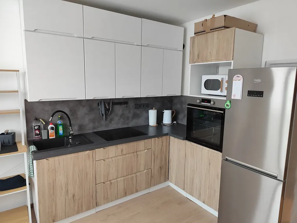 Nabízíme k pronájmu pěkný byt o velikosti 1+1 v ulici Lužická v Jablonci nad Nisou. Byt se nachází v sedmém patře a prošel nákladnou rekonstrukcí koupelny a kuchyně. V bytě se nachází vstupní chodba se vstupem do koupelny a kuchyně a z kuchyně je vstup do pokoje. Pro úsporu místa jsou vstupy řešeny posuvnými dveřmi. Koupelna je vybavena sprchovým koutem, stylovým umyvadlem a zrcadlem, toaletou a k dispozici je i pračka. Kuchyňská linka je nadčasová, prakticky řešená a je vybavená dřezem, elektrickou varnou deskou, vestavěnou troubou a lednicí. V pokoji je k dispozici velká šatní skříň a manželská postel. Podlahy jsou nové plovoucí, okna plastová s roletami. Bydlení je vhodné pro jednu až maximálně dvě osoby.