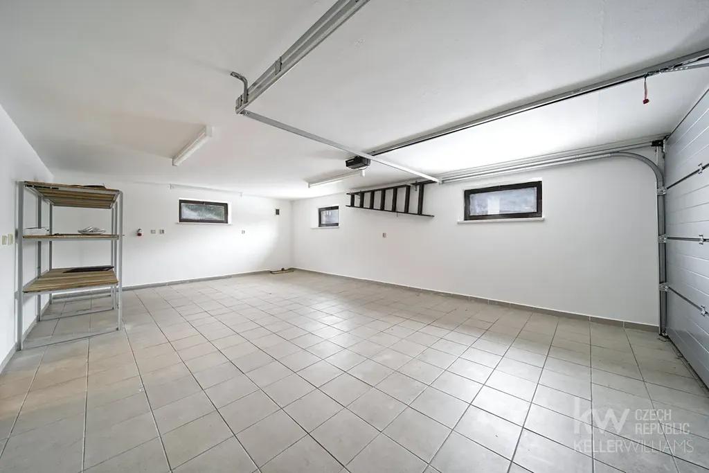 1. patro: dvě místnosti, dva úložné prostory, vstup do garáže, technická místnost, která zároveň slouží jako prádelna a samostatná toaleta.