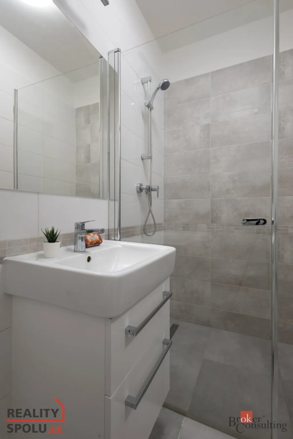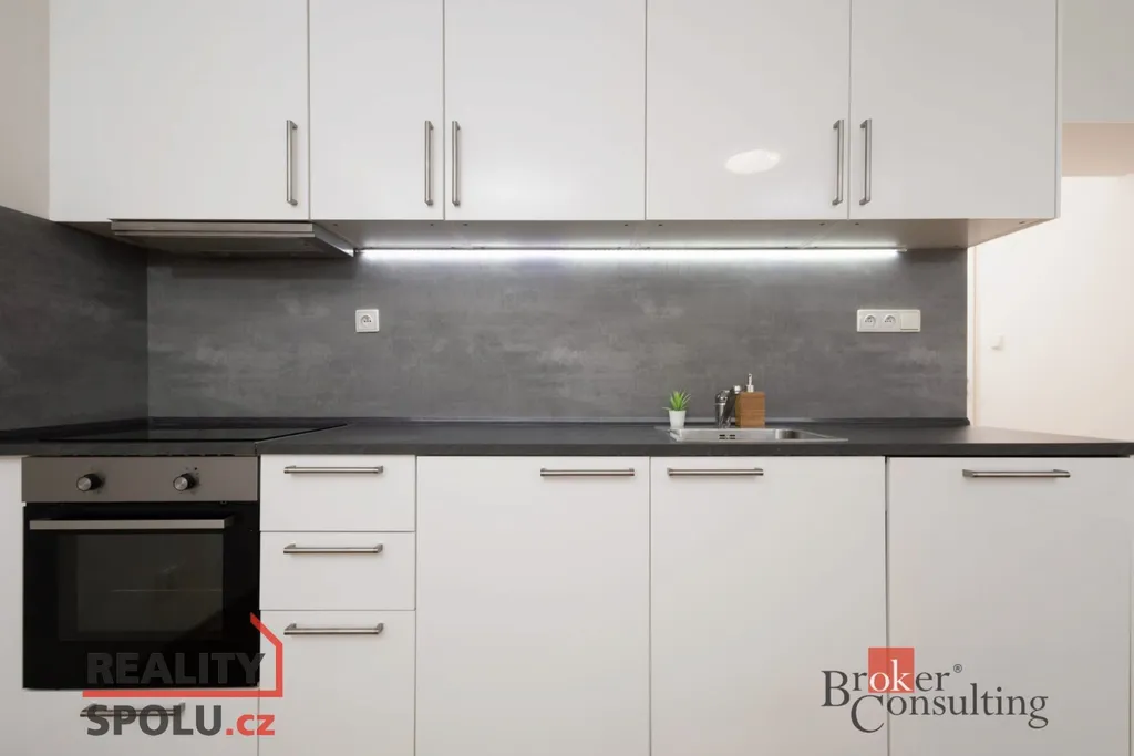 Moderní vybavení: Kuchyňská linka je osazena novými spotřebiči (indukce, el. trouba, myčka, digestoř). Samostatné WC a moderní koupelna se sprchovým koutem jsou samozřejmostí.