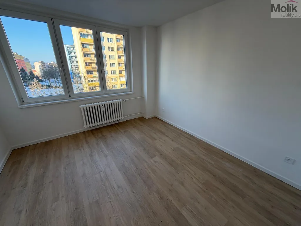 Byt je po kompletní rekonstrukci (štuky, elektřina, vinyl, kuchyň, koupelna, dveře, nové spotřebiče), která byla dokončena v lednu 2026.