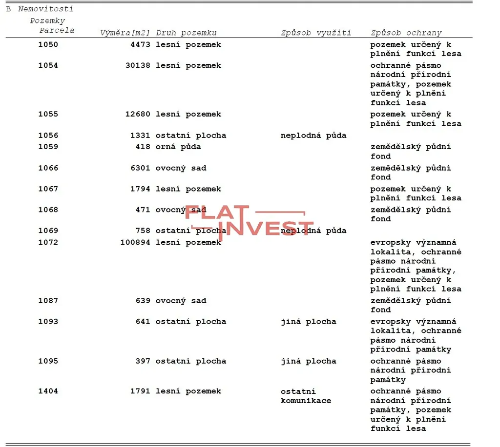 Nabízíme k prodeji rozsáhlý soubor pozemků o celkové výměře 162 726 m², tvořený převážně lesními pozemky, doplněnými o ovocné sady a menší podíl zemědělské půdy. Pozemky představují stabilní dlouhodobou investici s nízkým rizikem a potenciálem růstu hodnoty v čase.