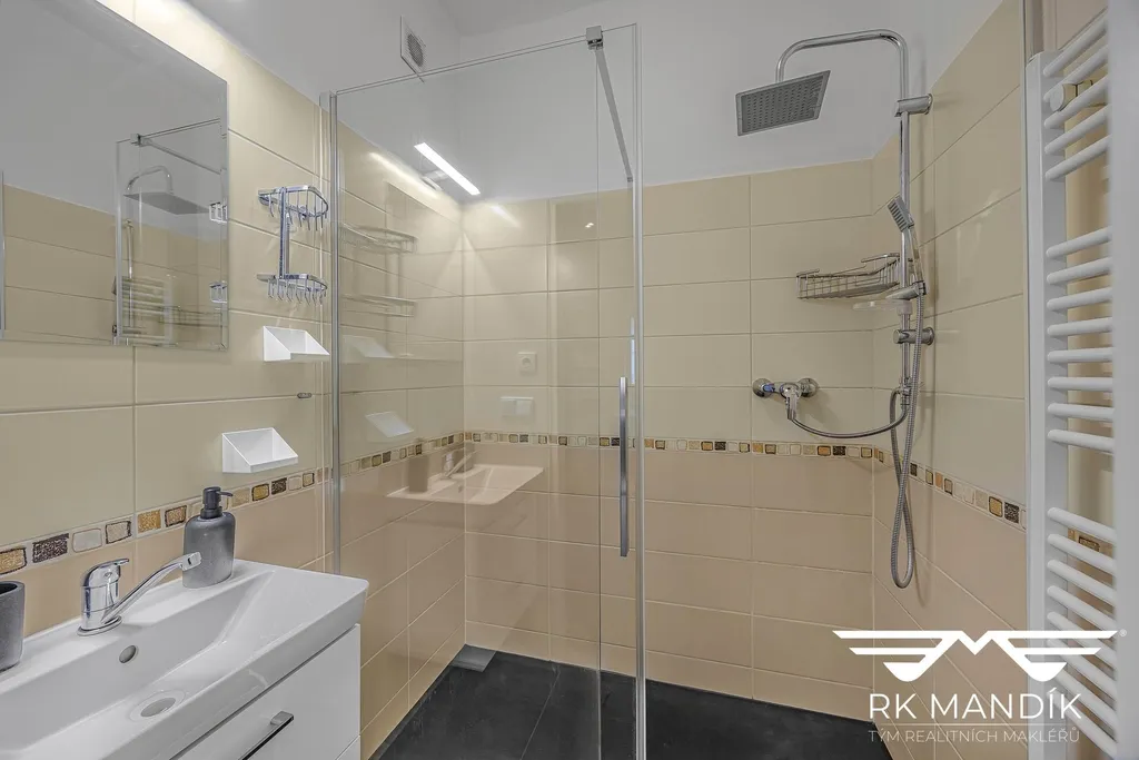 V bytě se nachází dva samostatné pokoje vybavené postelemi s rošty, pracovními stoly a volně stojící skříní. Koupelna je po kompletní rekonstrukci a disponuje sprchovým koutem, umyvadlem, zrcadlem a topným žebříkem. Úložné prostory zajišťuje vstupní chodba s botníkem a dále prostorná chodba s vestavěnou skříní a komodou. Byt se pronajímá zařízený dle fotografií.