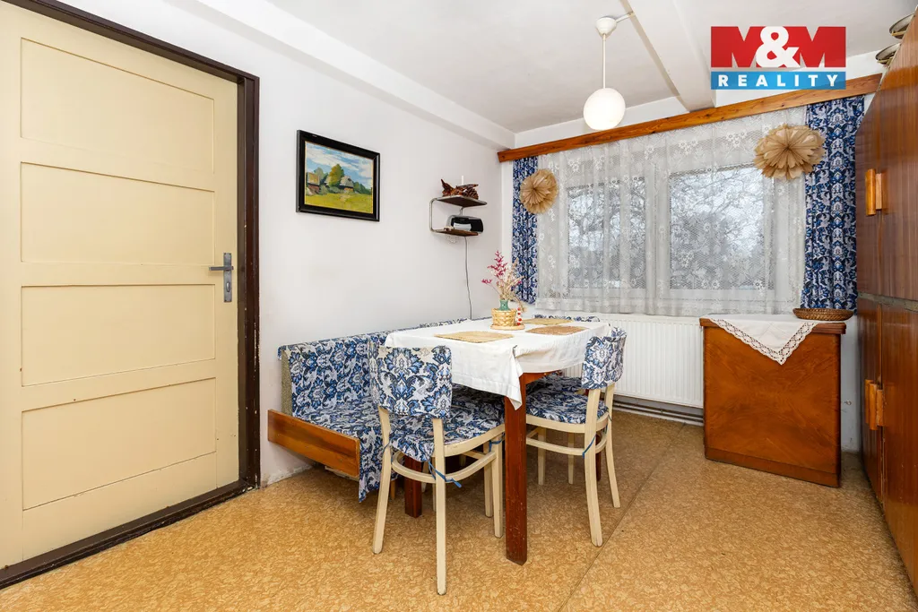 2. NP: samostatná toaleta, koupelna, kuchyň s jídelnou, obývací pokoj a dvě ložnice. Byt je v současné době pronajatý. Součástí nemovitosti je také samostatný pokoj o výměře 16 m², který je zatížen věcným břemenem užívání (právní vada). Vstup do tohoto pokoje je zajištěn z vedlejšího domu. Vytápění domu je řešeno plynovým kotlem. Platba v hotovosti. Volné dle dohody.