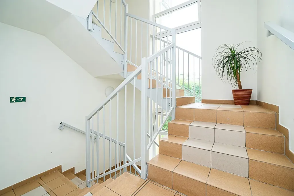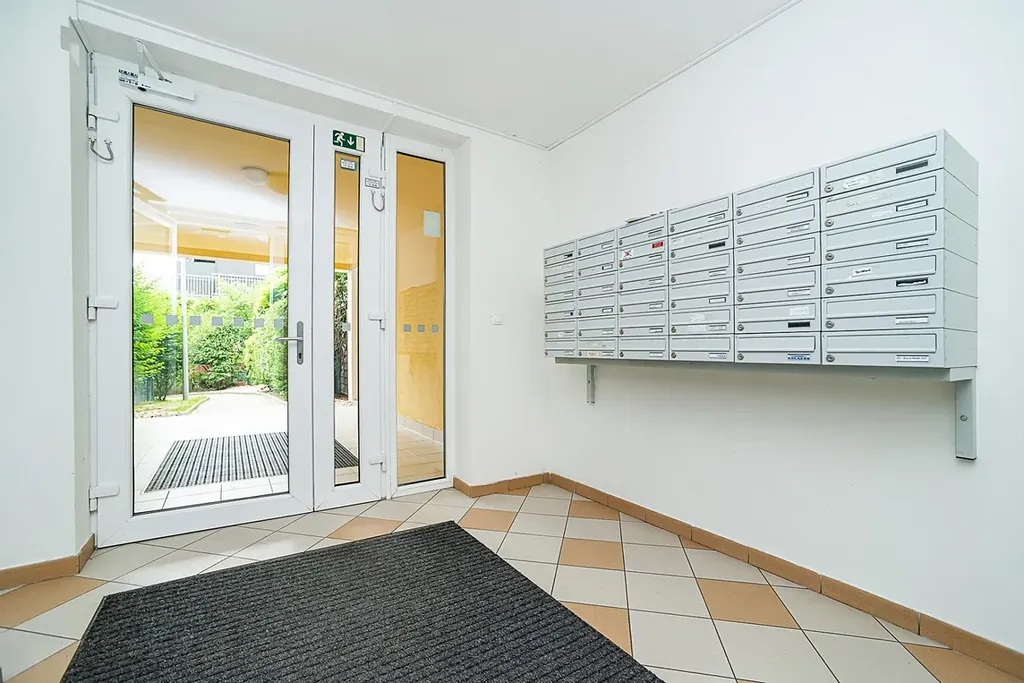 K příjemnému bydlení přispívá půlkruhový balkon s výhledem do zeleně, ideální pro relaxaci. Praktickým bonusem je komora umístěná hned vedle bytu, přístupná z chodby. K bytu náleží také sklep.