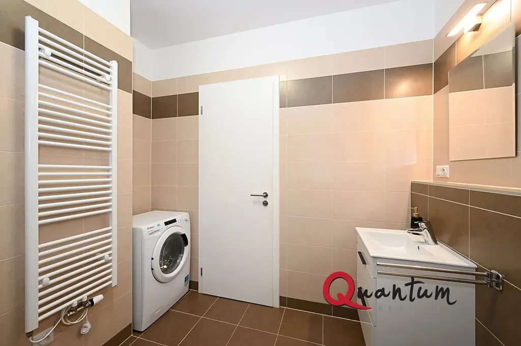 Byt je zařízený a připravený k pohodlnému bydlení. Moderní kuchyňská linka s indukční varnou deskou, digestoří, myčkou nádobí, troubou, mikrovlnnou troubou, vestavěnou lednicí s mrazákem a dostatkem úložného prostoru.