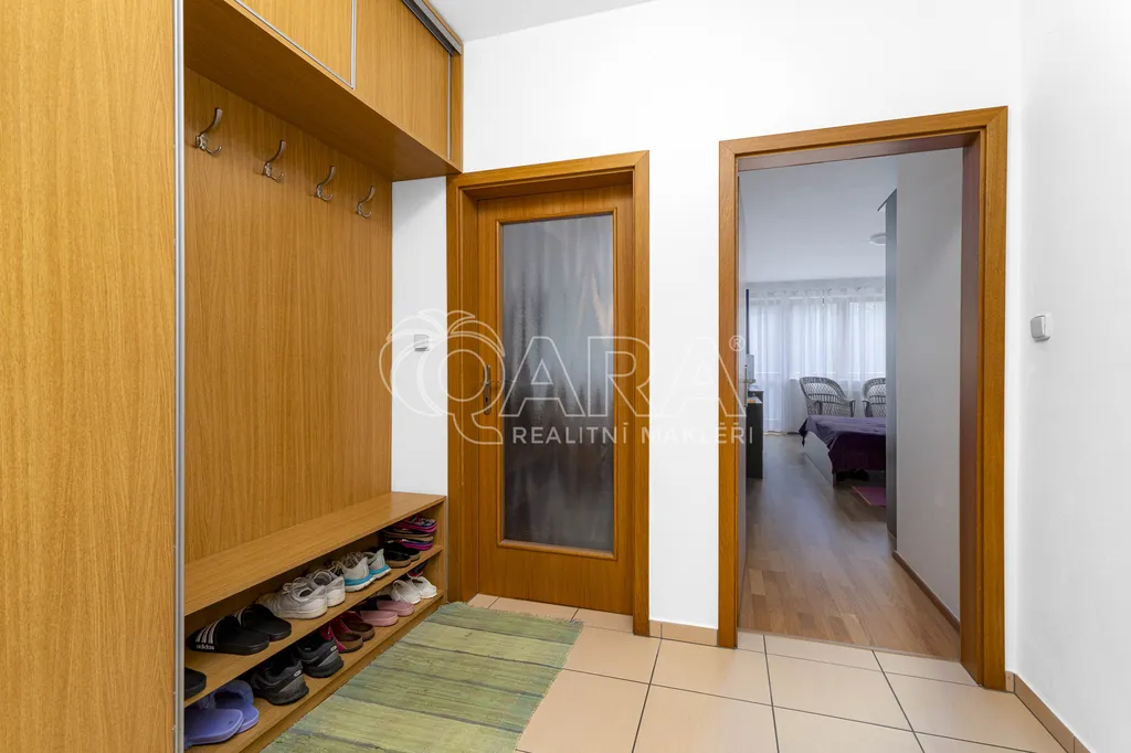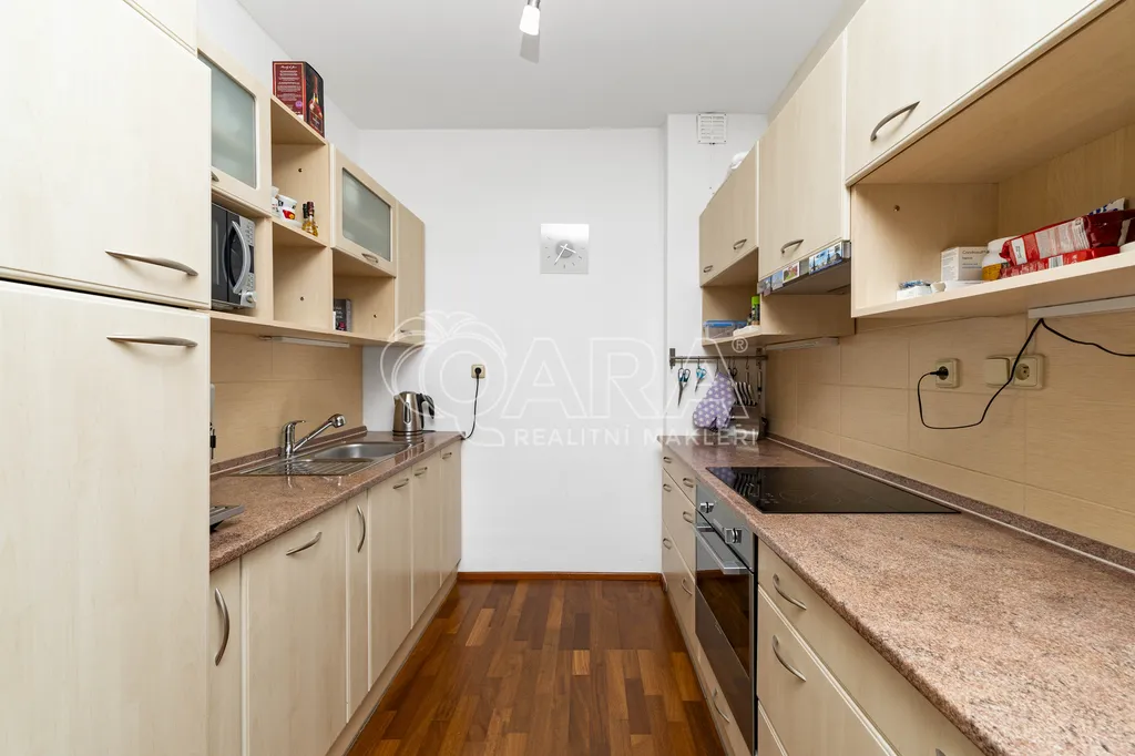 K bytu náleží garážové stání a také skladovací kóje. Byt je částečně vybavený a některé vybavení viz. foto zůstane (upřesním na prohlídce). Předností je velká koupelna, kde najdete sprchu, vanu a dvě umyvadla.