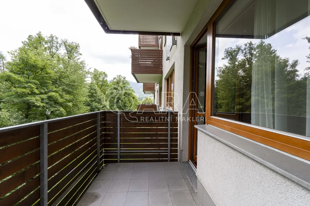 Pak vás může zaujmout tento elegantní byt 2+kk o velikosti 65 m² s balkonem (3 m²), který se nachází v oblíbeném komplexu Lara Wellness přímo na Čeladné.