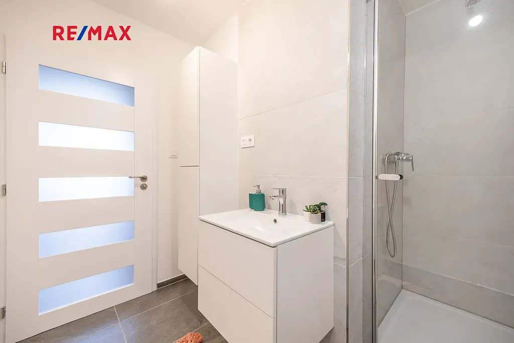 V předsíni je jak prostor na vestavnou skříň, tak walk in šatna. Koupelna má prostorný sprchový kout a toaleta je samostatná a nadstandardně prostorná.