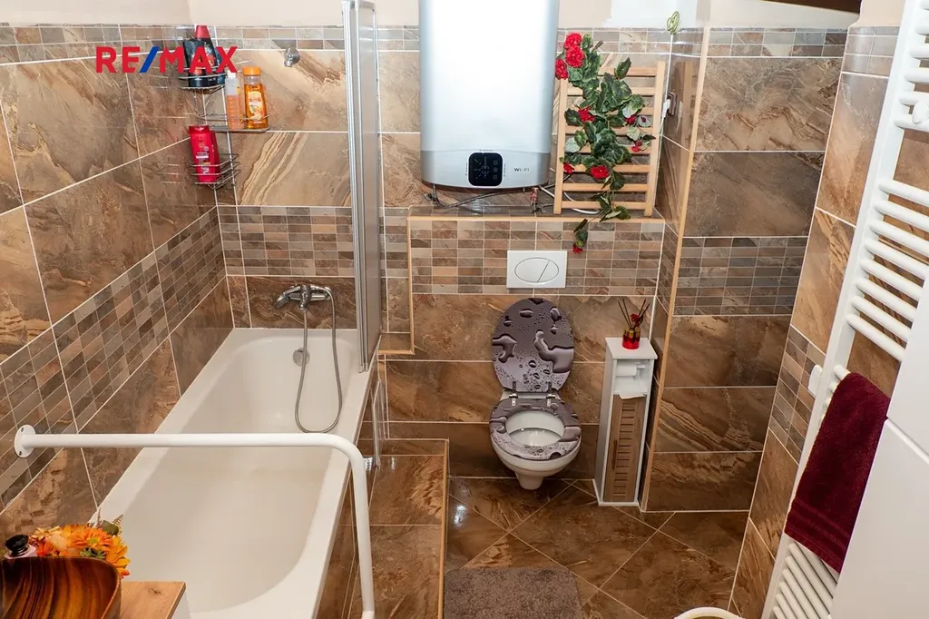 ohřev vody: samostatný bojler (2024) ve spodní koupelně