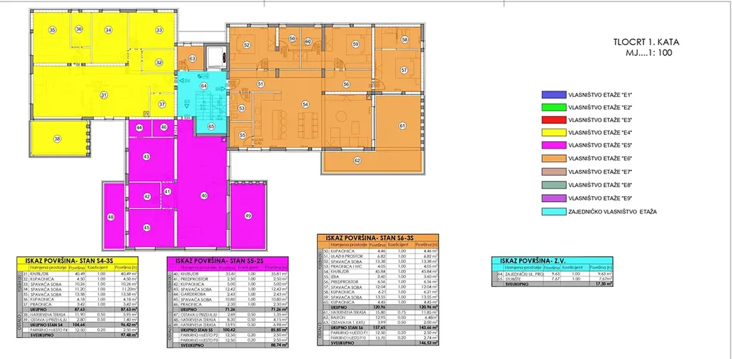 Apartmán č. S6 o celkové ploše 146,53 m2 je umístěný ve druhém podlaží čtyřpodlažní budovy s výtahem. Apartmán sestává z chodby, 3 ložnic, 3 koupelen, jedné samostatné toalety s prádelnou, jedné spíže, jednoho balkonu, velmi prostorného obývacího pokoje s kuchyní a jídelnou s přístupem na zastřešenou terasu s částečným výhledem na moře. K apartmánu náleží 2 parkovací stání a skladovací prostor v 1. podlaží.