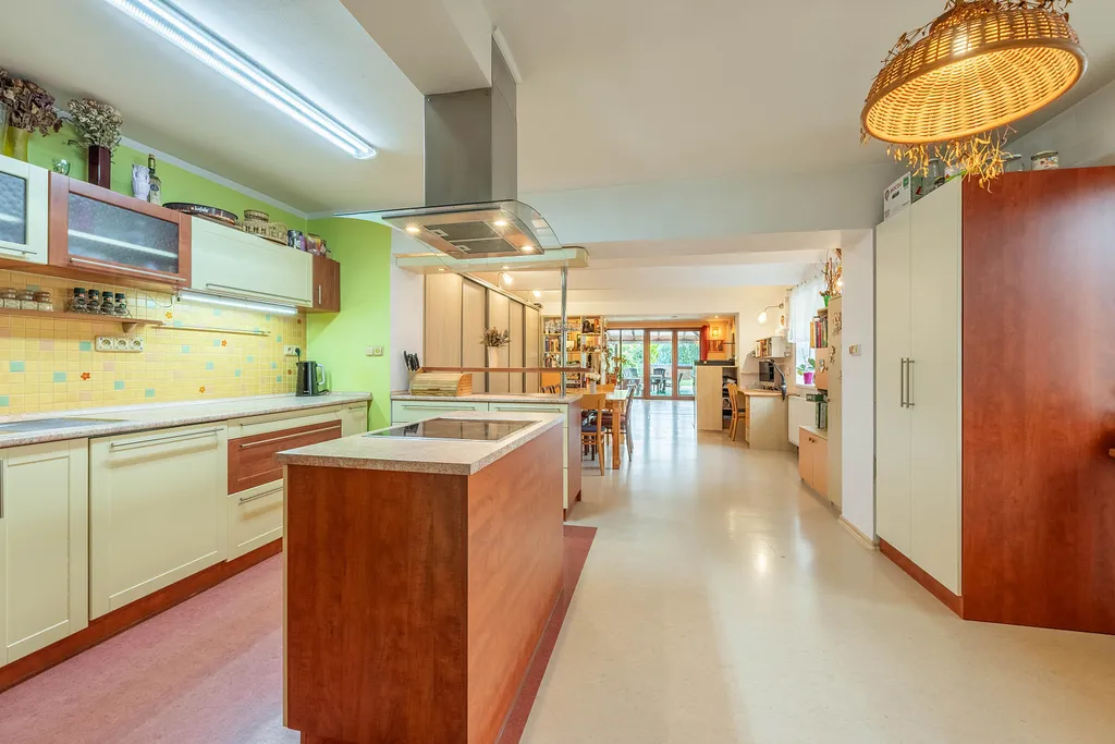 Nabízíme zprostředkování prodeje patrového rodinného domu v klidné části obce Hradištko, s dispozicí 7+1 + garáž, stojícího na pozemku o rozloze 1140 m². Tento cihlový dům byl zkolaudován v roce 2006 a je ve velmi dobrém stavu. Užitná plocha domu činí 241 m² + garáž pro 2 auta 36m² + pergola. Dále je zde praktický zahradní domek a nadzemní bazén vyhřívaný tepelným čerpadlem. Součástí domu je též malý sklípek o ploše 6 m² přístupný z předsíně.